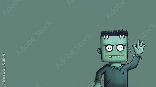 Cartoon Frankenstein s monster waving hello, Halloween coloring page, Friendly Halloween monster