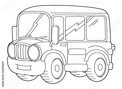 Cartoon funny cartoon bus - vector coloring page on white background - illustration for children