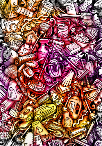 Cartoon graphics watercolor vector doodles Cleaning background