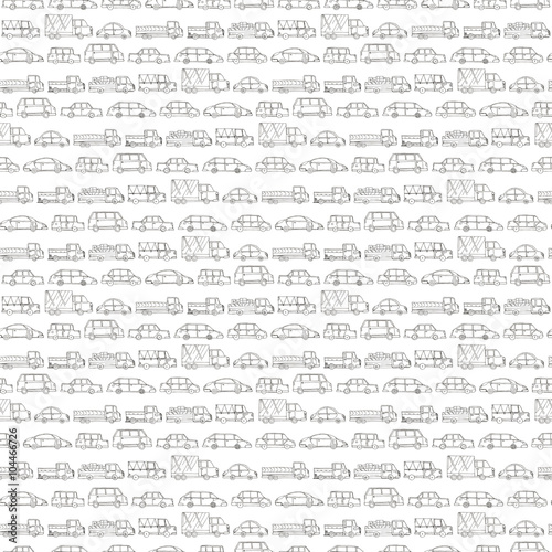 Cartoon hand drawing cars with traffic lights and road signs seamless pattern background. Coloring book
