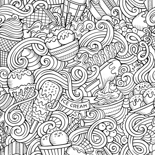 Cartoon hand-drawn ice cream doodles seamless pattern