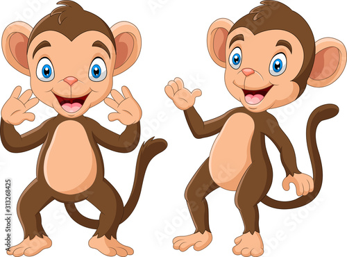 Cartoon Happy monkey waving hand
