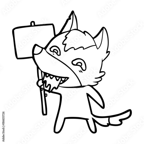 cartoon hungry wolf with sign post