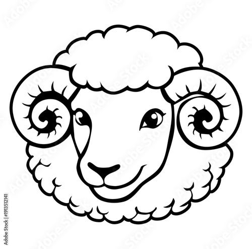 Cartoon Icon Animal Head Sheep Simple Digital Design.