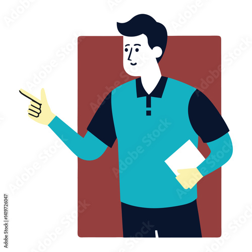 Cartoon illustration of a standing doctor character in uniform, holding a clipboard and stethoscope, a professional in health