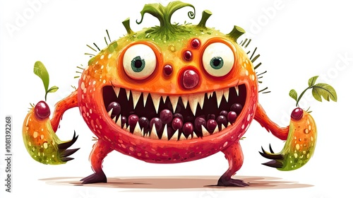 Cartoon Monster with Red Berries and Spiky Teeth