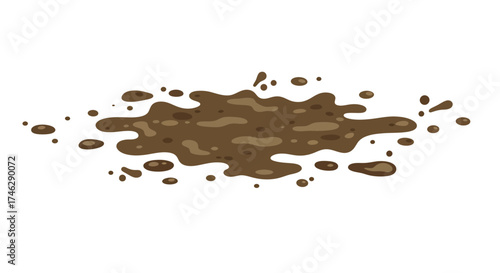 Cartoon Mud Splash with Droplets and Puddle Illustration.