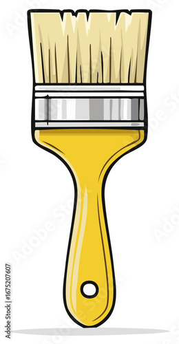 Cartoon Paint Brush with Yellow Handle and Beige Bristles Vector Illustration