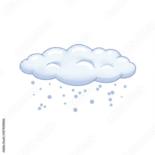 Cartoon Snow Cloud with Falling Snowflakes on White Background for Weather Concept
