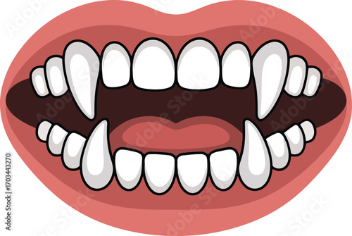 Cartoon Vampire Mouth with Sharp Fangs Open Wide Vector Illustration on Transparent Backdrop