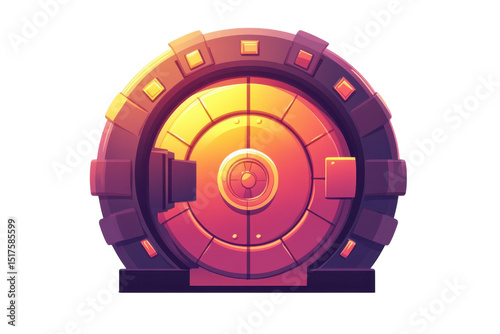 Cartoon Vault Door Golden Light Security Strongbox Safe Lock Fantasy Game on transparent background