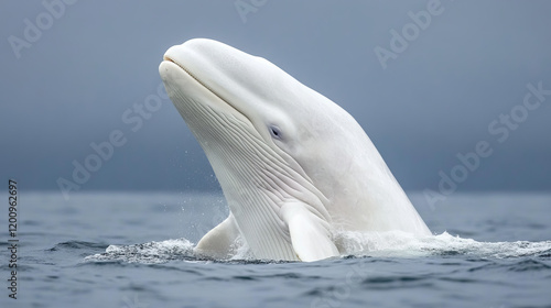 Cartoon white whale or beluga sea animal. Isolated vector graceful and majestic creature known for its striking white coloration and unique bulbous forehead, social nature and melodic vocalizations
