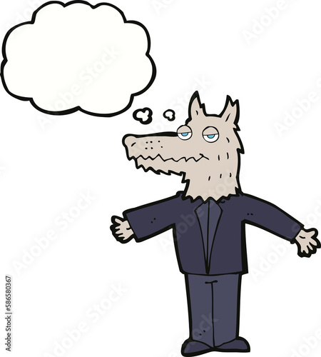 cartoon wolf with thought bubble