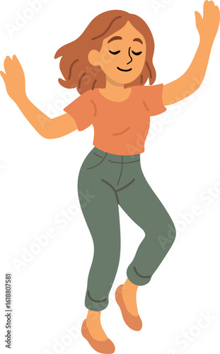 Cartoon Woman Dancing with Arms Raised