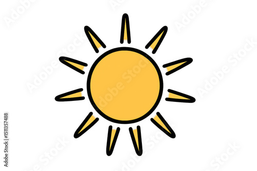 Cartoon yellow sun glowing, emitting radiant warmth, transparent background perfect for cheerful summer graphic designs