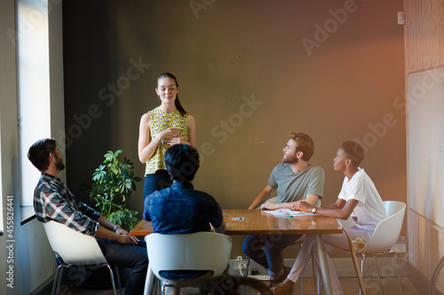 Casual business people meeting at table in office
