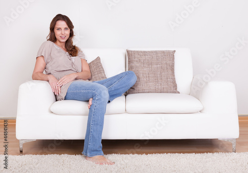Casual woman sitting on a couch