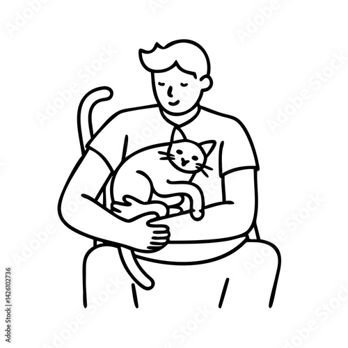 cat on owner s lap icon, cat on owner s lap line art - simple line art of cat on owner s lap, perfect for cat on owner s lap logos and icons
