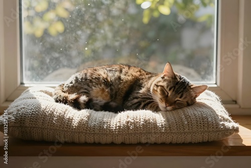 cat sleeping on the bed
