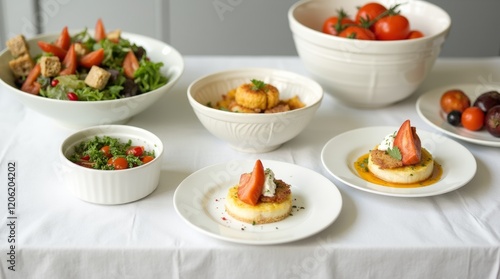 catering samples presented on a clean white tablecloth