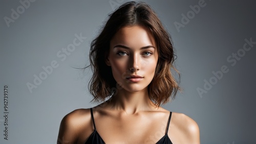 Caucasian Woman Minimalist in Simple Black Bikini Minimalist aesthetic with clean lines and simple lighting