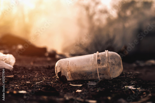 Caused by human littering, blurred waste pile images For background