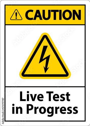 Caution Live Test In Progress Sign On White Background