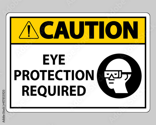Caution sign Eye Protection Required on white background