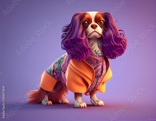 Cavalier king charles spaniel dog, dog animal dresses in fashion style generative ai