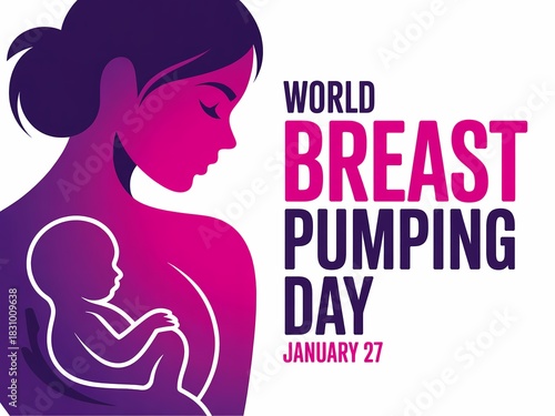 Celebrating world breast pumping day with a mother and baby illustration on january 23