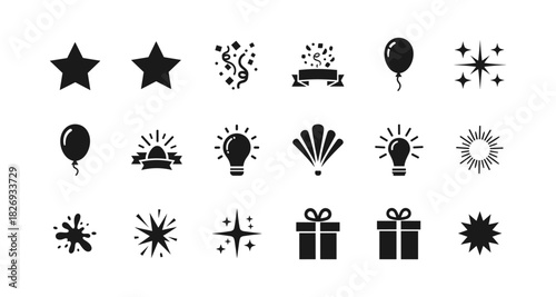 Celebration icons set: balloons, gifts, and festive elements in silhouette style