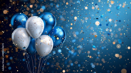 Celebration party banner with Blue color balloons background. Sale Vector illustration. Grand Opening Card luxury greeting rich. frame template.