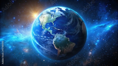 Celestial blue planet bathed in starlight, a breathtaking cosmic wallpaper.