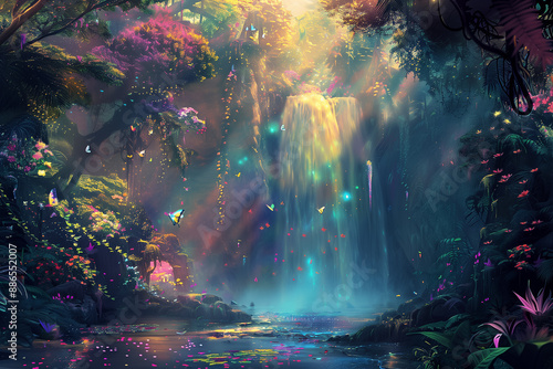 Celestial Cascade of Wonders: Where Dreams Take Flight and Nature Dances - Generative AI
