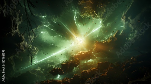Celestial Convergence: A Symphony of Green and Gold in the Cosmos