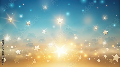 Celestial Dreamscape A Serene Evening with Glimmering Stars and Golden Hues Across a Dreamlike Sky