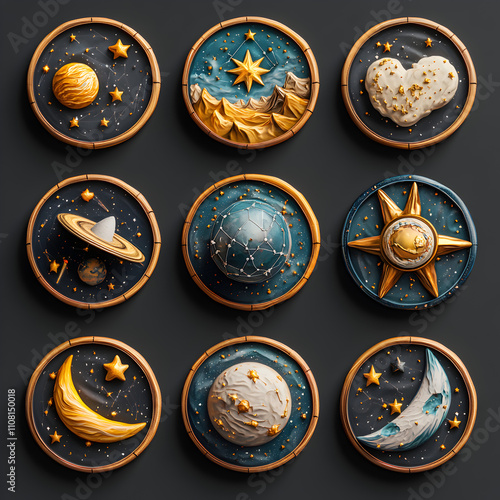 Celestial Icons Gold Blue D Space Art