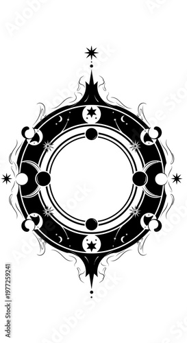 Celestial Moon Phase Frame with Stars and Esoteric Symbols
