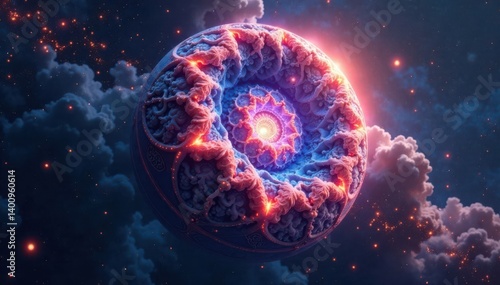 Celestial sphere with intricate fractal patterns , starry night, nebula