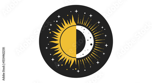 Celestial sun and moon vector illustration: cosmic elements for mystical design