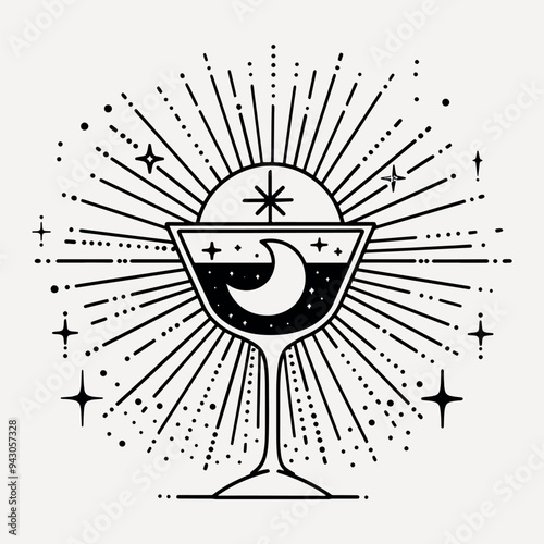 Celestial-themed wine glass illustration