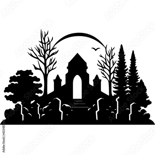 cemetery or graveyard. Silhouettes of gravestones