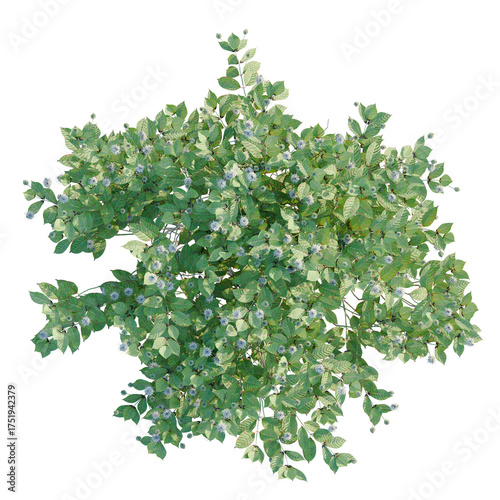 Cephalanthus occidentalis tree plan, top view, cutout, transparent background, isolate, Vibrant overhead view of lush green foliage and delicate flowering blooms