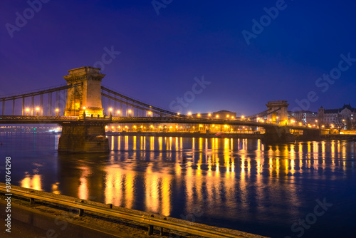 Chain Bridge at blue hour in Budapest. Hungary