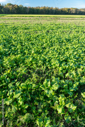 Champ repousse de blé avec couvert végétal et Cipan : vesce commune et moutarde brune