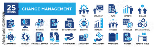 Change Management icon collection set. Containing design Team, Strategy, Plan, Improve, Engage