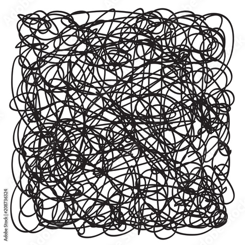 Chaos pattern on white. Abstract texture. Chaotic lines. Intricate wallpaper. Hand drawn dinamic scrawls. Black and white illustration. Background with waves. Art creation