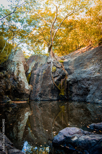 charco entre el bosque otoñal