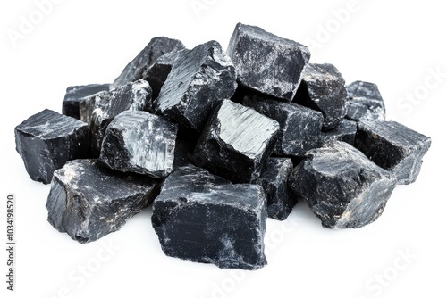 Charcoal Chunks Pile on White Background