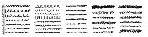 Charcoal grunge strokes and borders set. Coal pencil sketches. Grunge strokes, lines and curves collection. Charcoal pencil hatches and scribbles.